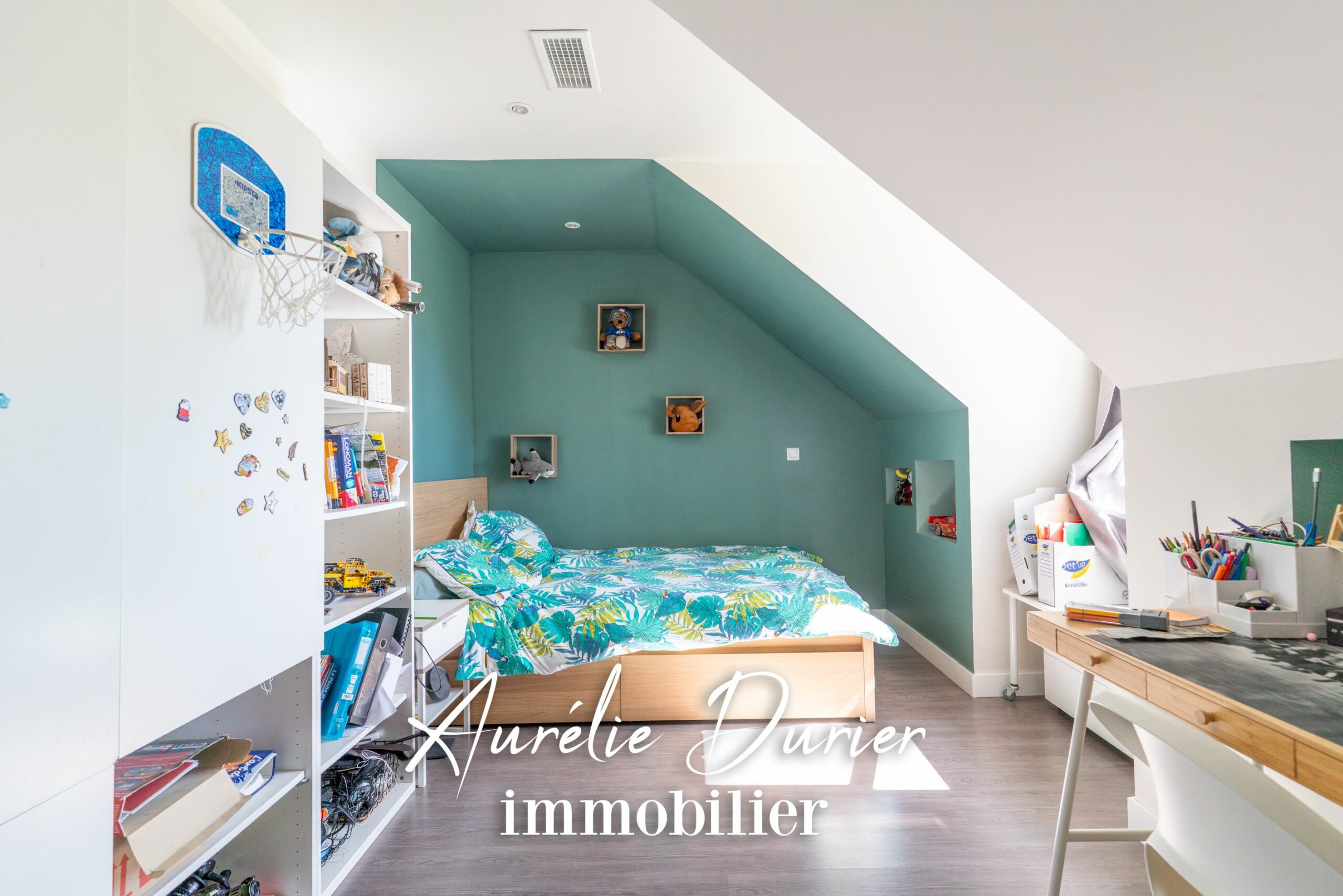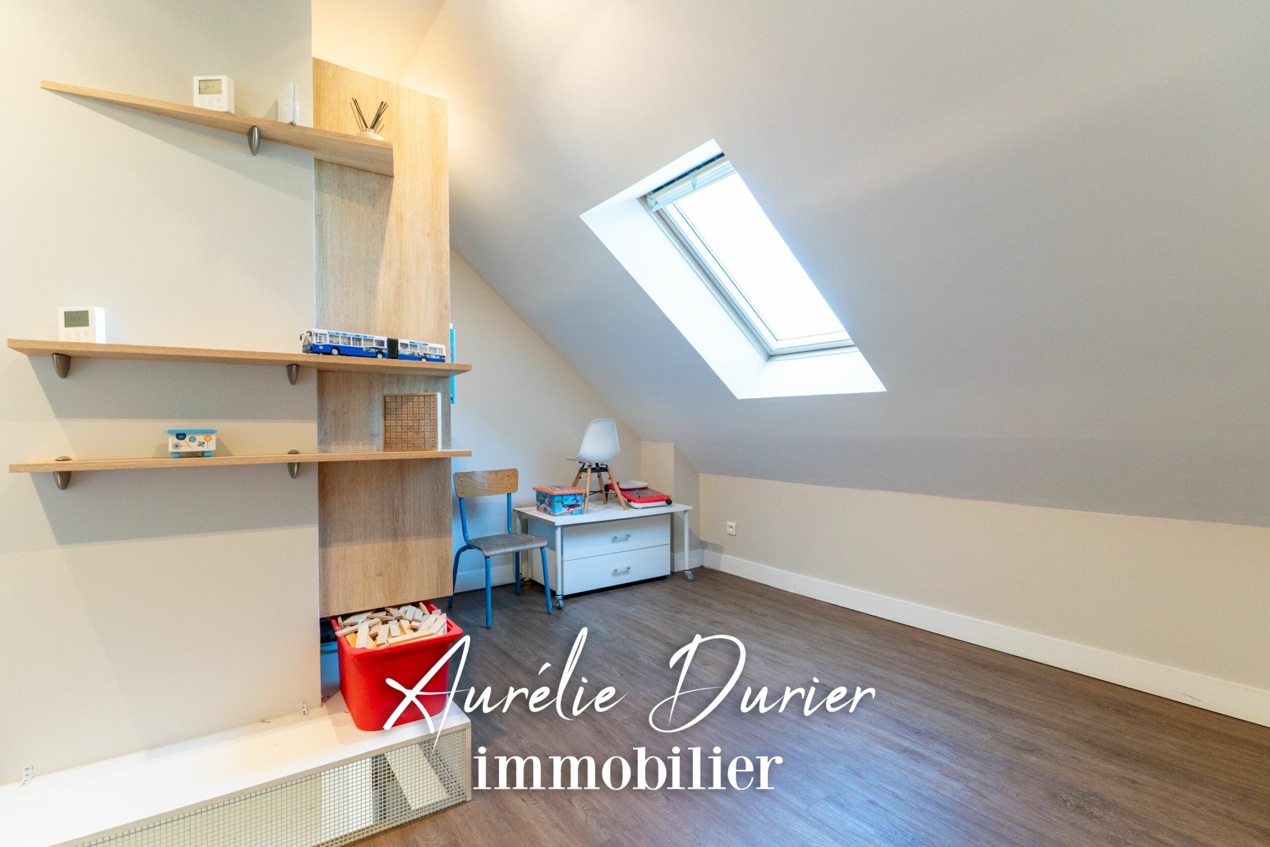 À l’étage, une mezzanine baignée de lumière surplombe les pièces de vie et peut facilement être transformée en chambre ou bureau. Trois chambres supplémentaires dont une avec pièce attenante pouvant servir de dressing ou de bureau ainsi qu’une salle de bain complètent ce niveau offrant confort et optimisation.