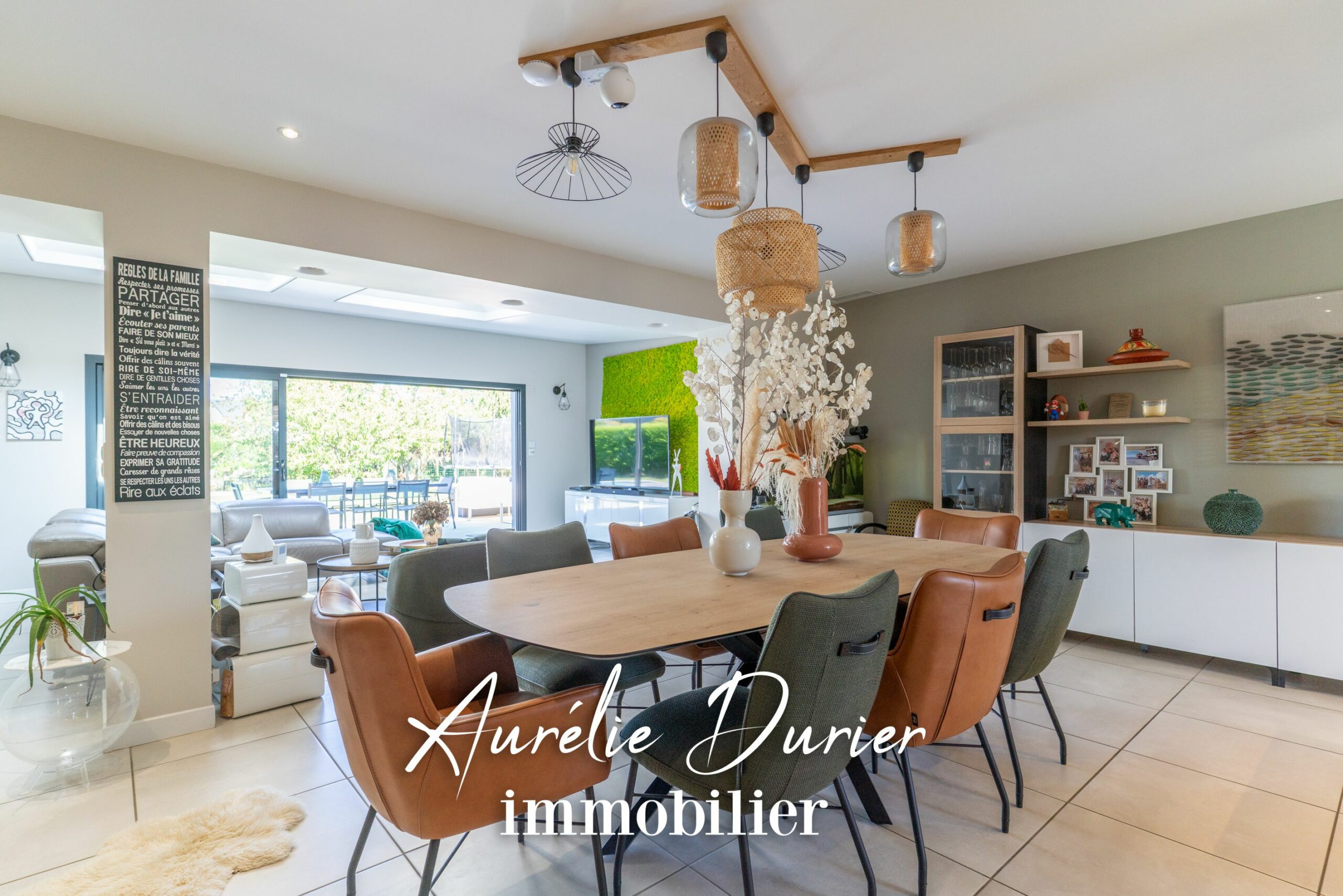 Dès l’entrée, vous découvrirez une entrée spacieuse avec son coin lecture cocooning donnant sur son vaste espace de vie de plus de 75 m2. Cet espace ouvert et lumineux se compose d’un salon chaleureux avec son insert bois, d’une salle à manger conviviale et d’une cuisine entièrement aménagée et équipée de belles factures. De magnifiques baies vitrées donnent directement accès sur le jardin, la terrasse et la piscine.