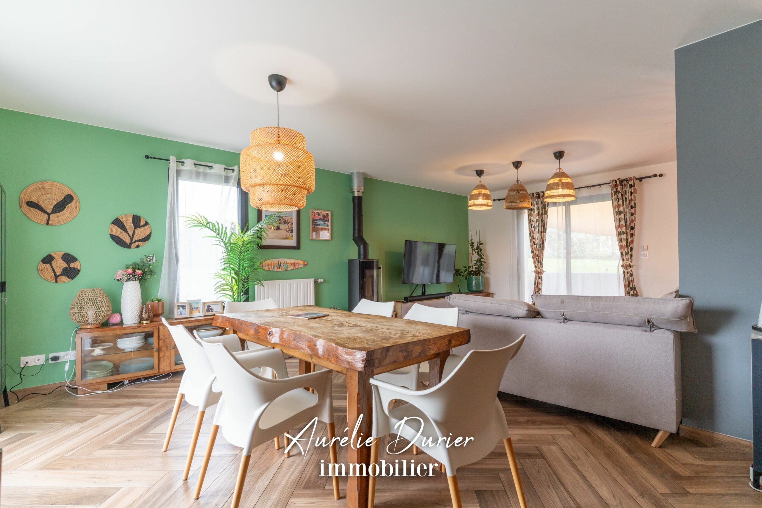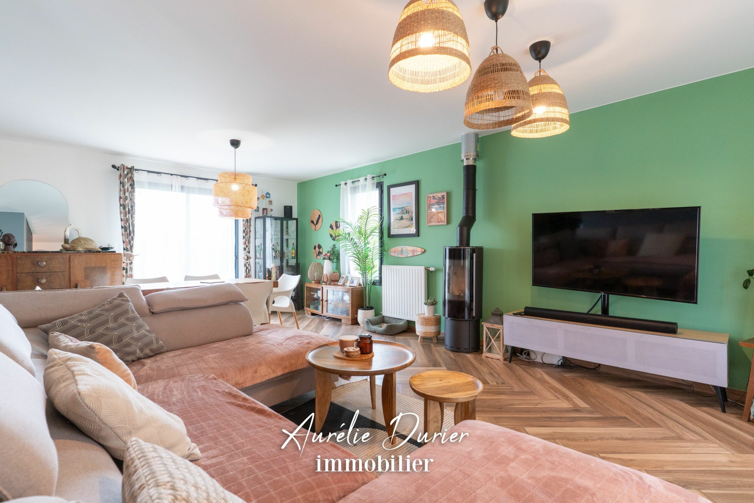 Dès l’entrée, vous serez séduit par la pièce de vie baignée de lumière de plus de 41 m² sublimée par un carrelage imitation parquet et un insert performant pour vos soirées d’hiver.