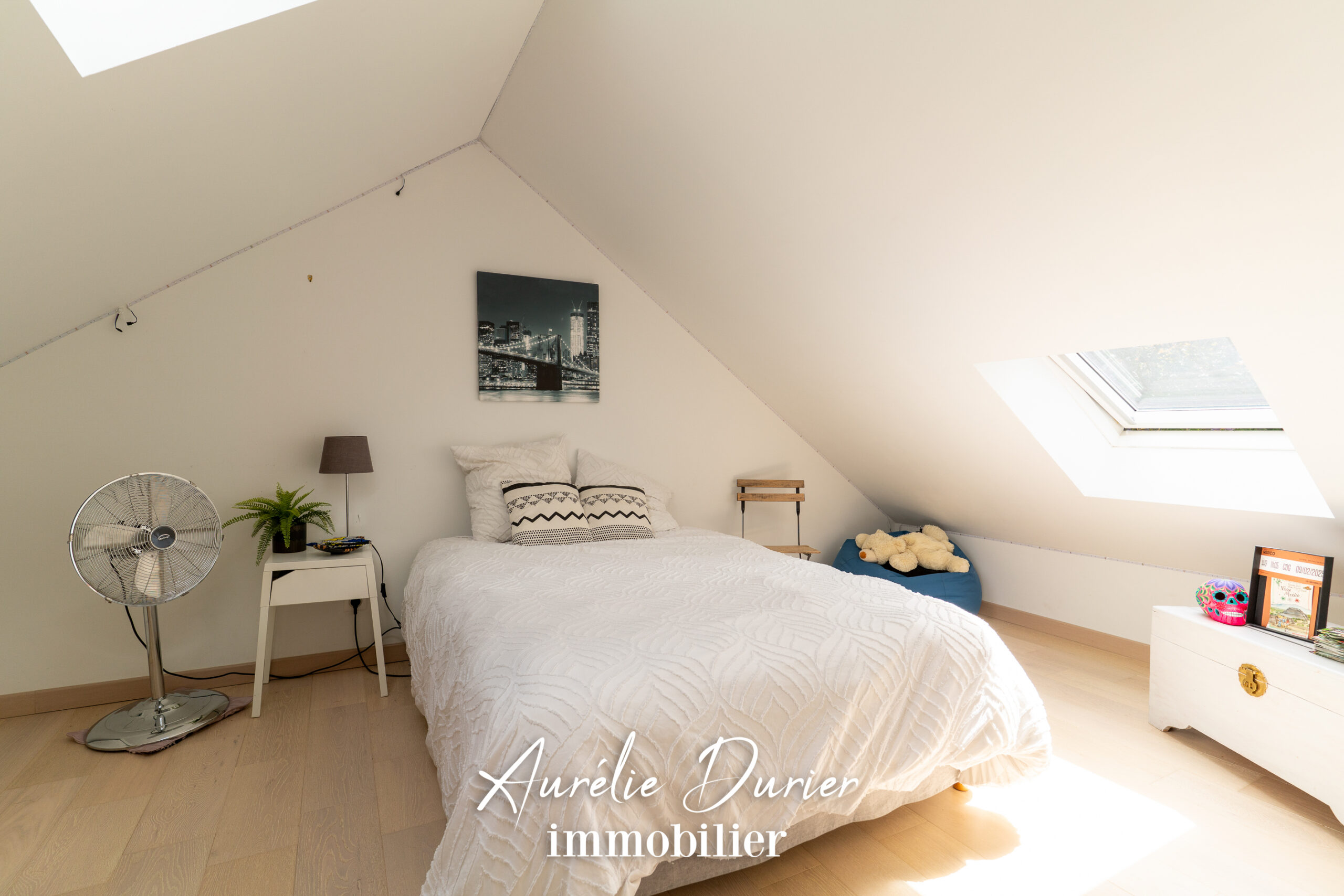 À l’étage, vous trouverez une palier desservant une chambre avec son espace bureau ainsi qu’une seconde suite avec salle d’eau et dressing.