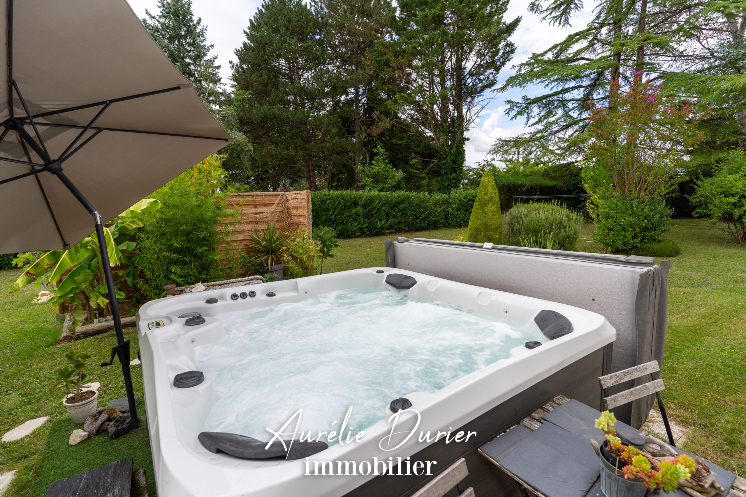 À l’extérieur, le charme continue d’opérer : le jardin arboré de 3100m² parfaitement entretenu propose un espace spa propice à la détente ainsi qu’un coin potager à aménager selon vos envies. Un cabanon avec atelier, carport et un garage motorisé complètent ce tableau bucolique.
