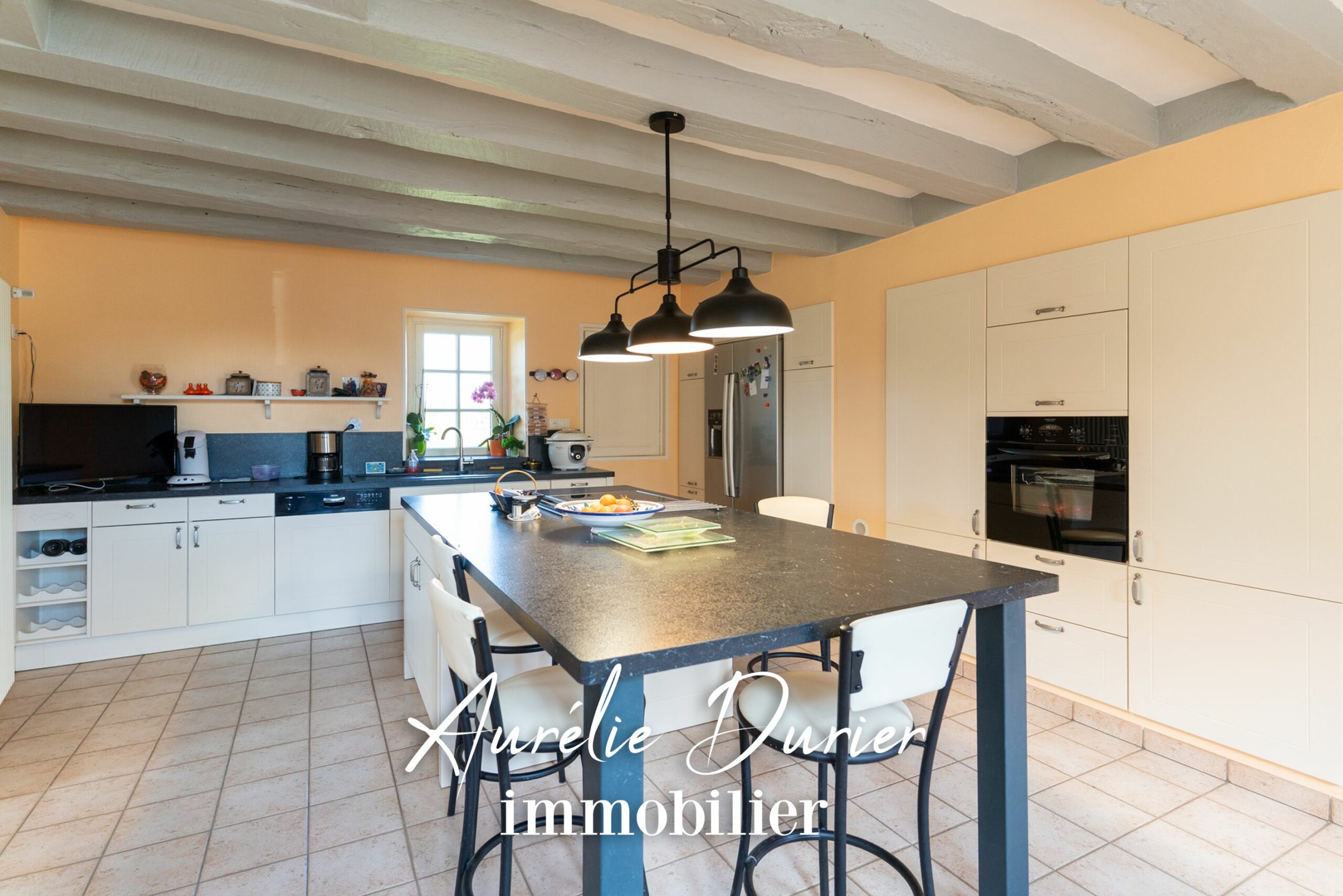 La maison principale s’ouvre sur un vaste séjour agrémenté d’un poêle à granulés. La cuisine aménagée et équipée complète harmonieusement les espaces de vie.